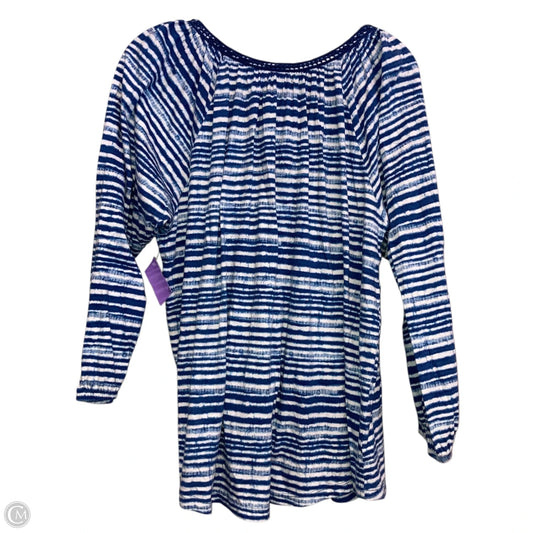 Top Long Sleeve By Chaps In Blue & White, Size: L
