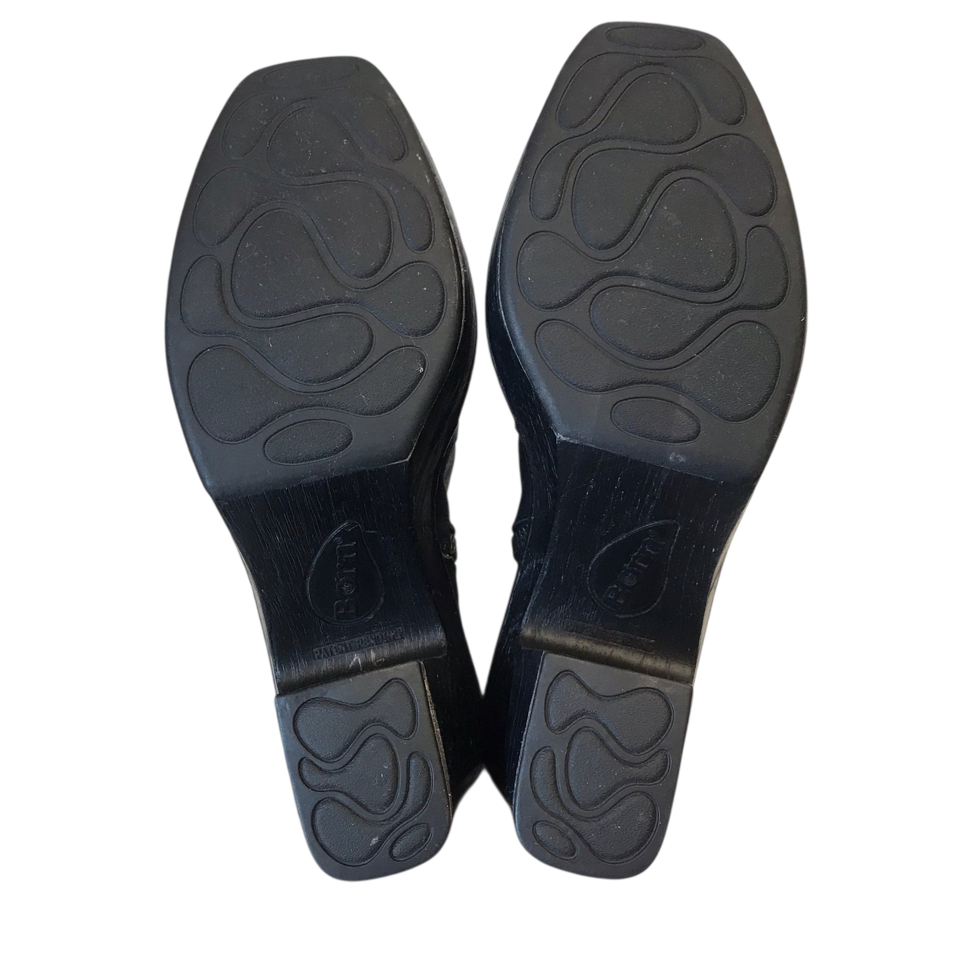 Step up your shoe game with these chic Born black ankle heels in size 6.5. Crafted with quality materials, these boots exude sophistication and timeless style. Add elegance to your wardrobe today!