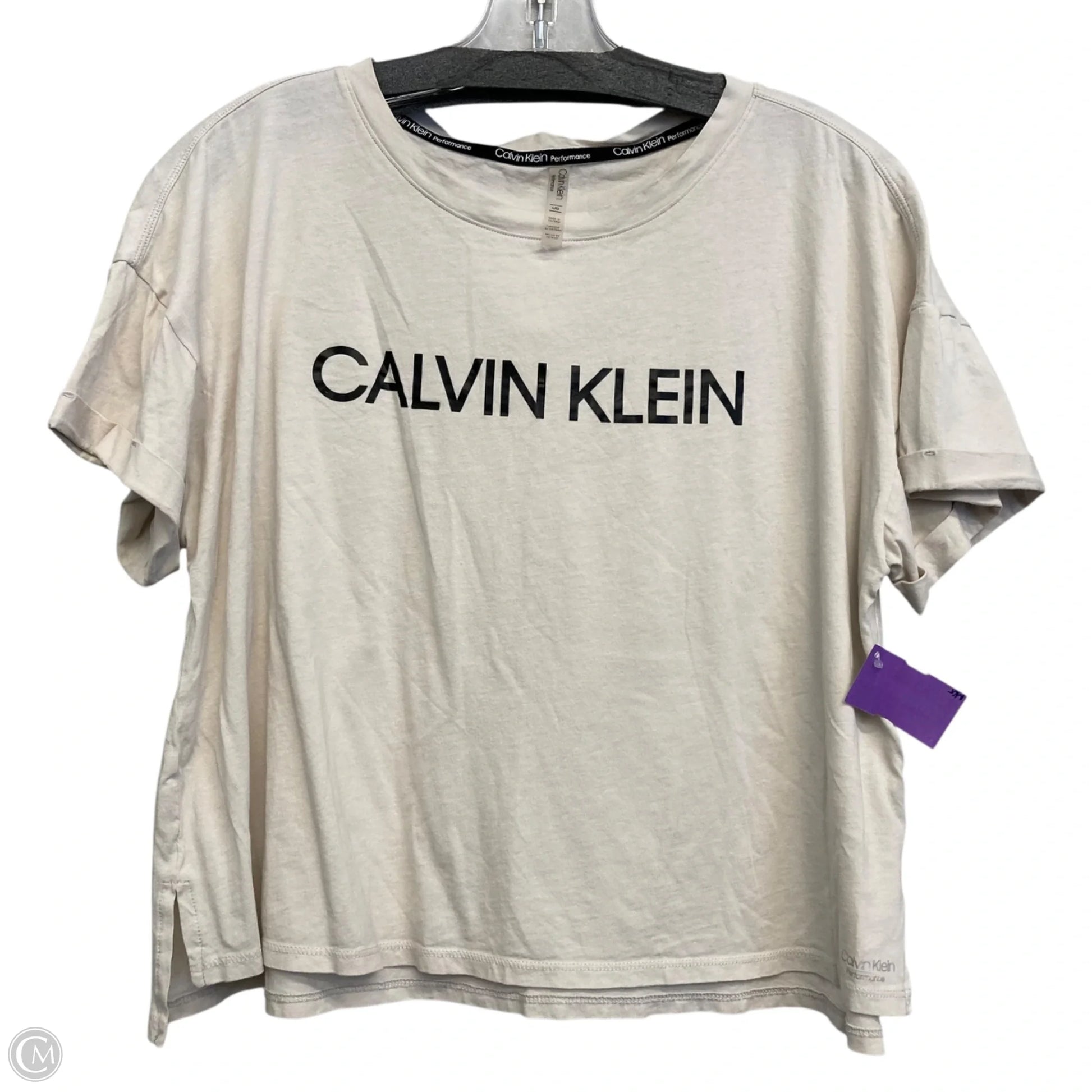 Top Short Sleeve By Calvin Klein In Beige, Size: L