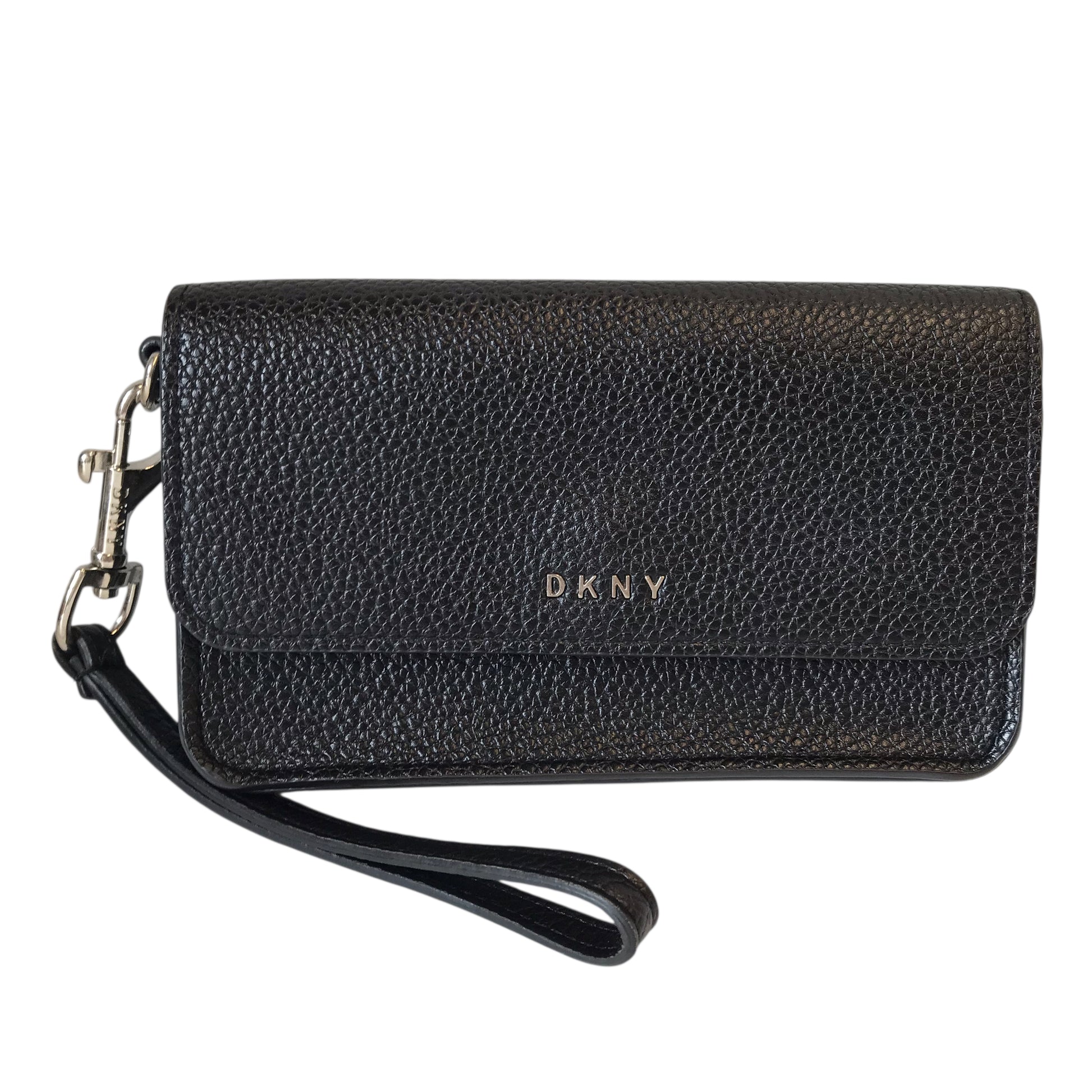Crafted by DKNY in sleek black, this medium-sized wristlet exudes sophistication. Organize essentials with ease in this stylish, quality accessory.